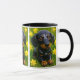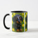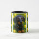 Un chiot noir en 3D, allongé dans un champ fleuri jaunes éclatantes. Un mug fleuri et joyeux qui respire le printemps et la tendresse. Cette image montre un adorable chiot noir et feu en trois dimensions, allongé dans l’herbe parmi de jolies fleurs jaunes. Le design réaliste donne à son pelage un aspect brillant, proche de la porcelaine, avec des détails nets et une posture attendrissante. L’illustration joue avec les contrastes : le noir profond du chien, les teintes chaudes de ses pattes et les couleurs vives des fleurs créent une image joyeuse et vivante. Le style graphique en 3D renforce l’aspect expressif et charmant du chiot. Ce mug dégage une énergie printanière idéale pour les amoureux de la nature et des animaux.