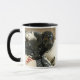 Mug chiot noir 3D sur coussins, design original.