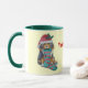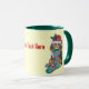 Mug chiot noir et brun mignon vêtu pour noël