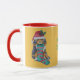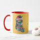 Le mignon chiot sur cette tasse de noël personnalisable a l'air très festif en portant son chapeau de santa rouge avec une pointe de saint dedans. Le petit chiot brun et noir tient dans sa bouche son bas de Noël rayé rouge et vert tandis qu'il attend avec impatience une visite du Père Noël pour remplir son stock de nombreux cadeaux et autres gâteries pour chiens. Il a l'air très spécial sur cette tasse de Noël originale. Vous pouvez personnaliser cette tasse unique en ajoutant votre propre texte si vous le souhaitez.