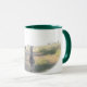 Une tasse avec la photographie vignetted de Chloe le kangourou et le Sam le chien de berger sur leur promenade de matin
