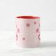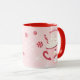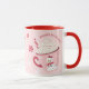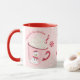 Jouez à la tasse à thème de vacances qui fait un cadeau de Noël parfait ou le rembourrage complet. Le design peut être personnalisé avec le nom de votre enfant et comprend un design chocolat chaud bonhomme de neige avec crème fouettée, sucres de canne, bonbons de menthe poivrée et flocons de neige en rose et rouge.