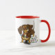 Jolie oeuvre d'art de chocolat & tan Dachshund enveloppé dans les lumières de Noël. Art par Andie (c)2014.