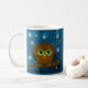 Chouette brune mignonne et duveteuse, vous souhaitant une bonne nuit et de doux rêves. Un ciel nocturne plein d'étoiles scintillantes est le fond de cette chouette nocturne mignonne assise sur une branche. Avec un texte personnalisable, cela ferait le cadeau parfait pour le cacao au lit de n'importe qui.