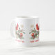Stunning arrangement of holly, Christmas balls, and a charming red cardinal. Get into the holiday spirit with a customizable mug featuring red personalized typography.