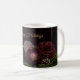 Christmas Party Pink Ornaments Green Leaves Black Coffee Mug. Unique, beautiful, stylish design. Easy to be personalized. Font style, size and colors can be changed. Matching items are available.