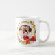 This custom mug is the perfect way to make a memorable gift for family, friends, or even yourself! It features a vibrant, high-quality print of a gorgeous gold glitter-effect wreath encircling your cherished family photo. The wreath is beautifully accented with classic holiday elements like poinsettias, holly, berries, and evergreen sprigs.