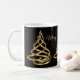 Christmas Shiny Golden Ribbon Tree Sparkle Black Coffee Mug. Unique, beautiful, stylish design. Easy to be personalized. Font style, size and colors can be changed. Matching items are available.