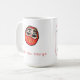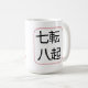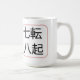 L'énonciation japonaise célèbre de "tombent vers le bas 7 fois - tenez 8" est illustré sur cette belle tasse à côté d'un portrait du Daruma, le moine bouddhiste japonais qui a médité pendant 9 années devant un mur.
