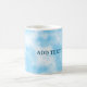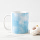 Nuages blancs dans le ciel bleu. Des tasses à café personnalisées. Ajoutez un nom ou un texte à personnaliser. Décor et idée cadeau.