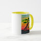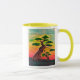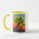 Un beau coucher de soleil de corail met en valeur les baobabs qui poussent sur la colline. Les arbres sont magnifiquement dessinés dans le ciel du soir. Le graphique se présente bien sur les tasses.