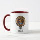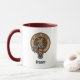 Cimier du badge du clan Fraser de Lovat entouré d'une sangle et d'une boucle sur fond de tartan. Texte personnalisé des deux côtés.
