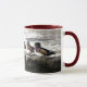 Cinq canards en bois debout près d'un étang. Chéri et numériquement peint à partir de la photo.Mug.