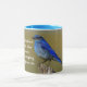 Cette tasse cool présente une photo stupéfiante d'un oiseau bleu de montagne avec une citation inspirante, "Soyez comme le bleu qui n'est jamais bleu, car il sait de son éducation ce que le chant peut faire." Photographie créée par la photographe primée Maria Jeffs.
