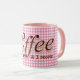 Fun café brun texte de citation sur blanc et rose en vichy motif.