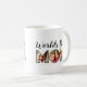 Cette mignonne tasse à café personnalisée pour les mères présente une citation de trois photos collage avec "Meilleure maman du monde". Remplissez la lettre avec vos photos de famille préférées pour un cadeau unique pour la fête des mères. Conçu par ©Susan Coffey.
