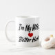 Mug avec moi je suis la meilleure moitié de ma femme en texte noir 3D. Disponible en plusieurs tailles et styles.
