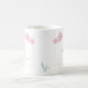 Cette jolie tasse est parfaite pour la fête des mères ou comme cadeau pour la mère de la mariée. D'un côté se trouve la phrase "Une mère est comme une fleur - chacune est belle et unique" à l'intérieur d'un cadre géométrique doré et carré orné de fleurs aquarelles roses et de feuillage bleu-vert. Le motif géométrique floral est répété de l'autre côté avec un champ personnalisable pour son nom. Au centre de la tasse, entre les deux cadres, se trouve un petit élément de feuillage et de fleurs assorti. Le texte est écrit dans une police de caractères bleue-vert élégante et calligraphiée.