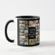 Créez votre propre devis personnalisé photo collage mug. Caractéristiques 34 de vos photos préférées et texte personnalisé dans la typographie de calligraphie moderne. L'impression est répétée à l'avant et à l'arrière.