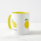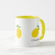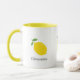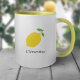 Une tasse avec illustration jaune citron et texte personnalisable : cadeau parfait pour les amateurs d'agrumes. Il peut être utilisé à la maison, à l'école ou au travail.