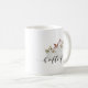 Tasse à café festive sur mesure avec calligraphie à la main "bonjour chute" avec aquarelle blanc citrouille et feuille design.