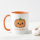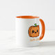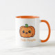 Une tasse avec un citrouille mignon dans le style Kawaii et un texte personnalisable : parfait pour prendre votre café sur Halloween!