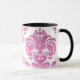 Mug Clair rose et blanc Élégant Chic Damask Patte