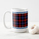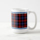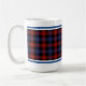 Tasse à café avec le tartan pour Clan Brown et Bron. Royal bleu, noir et rouge écossais plaid motif de 1905, avec des accents verts.