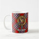 Clan MacFarlane écusson de crête entourée d'une sangle et boucle sur l'arrière - plan tartan rouge. Texte personnalisé des deux côtés.