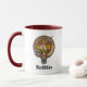 Clan MacMillan insigne crête entouré d'une sangle et boucle sur l'arrière - plan écossais habillé. Texte personnalisé des deux côtés.