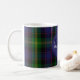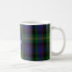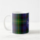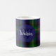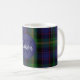 Une tasse de café monogrammée réalisée dans un clan écossais traditionnel et coloré Watson tartan plaid motif. Un cercle bleu a un monogramme et un nom de famille. Personnalisez le monogramme et le nom selon vos besoins.