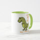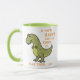 T-Rex, happy until the song said he should clap his manuels ! Funny dinosaur drawing with text lettering, on t-shirts, hoodies, cards, toxiques.