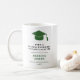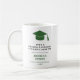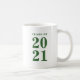 Cette tasse verte de bouchon de graduation sera parfaite pour se souvenir de la façon dont vous avez survécu à votre dernière année durant la pandémie. Le design de la fonction caps graduation en vert sur un arrière - plan blanc éclatant. Texte : "Même une pandémie mondiale ne pouvait pas m'arrêter." Vous pouvez personnaliser avec le nom du diplômé, l'école et l'année de diplôme. Sur le dos il dit "Classe de 2021" en gras verts.