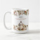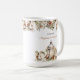 Coca chaud blanc et crème ou chocolat Noël Grand Café Mug dans le style classique de la ferme moderne avec pin, fleurs blanches de Noël, lanterne et un oiseau mignon. Customiser facilement le texte - Kate Eden Art