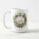 This beautifully designed holiday coffee mug features elegant watercolor artwork of a wreath adorned with a white bow, pinecones, holly leaves, red berries, and pine needles. Its classy yet rustic design, along with the customizable "Happy Holidays" text, captures the essence of the December holiday season, making it a thoughtful choice for spreading holiday cheer.
