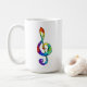Polygone, arc-en-ciel, clé musicale brillante sur arrière - plan blanc. tatouage en polygone. Clé d'arbre