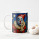 Clown mélancolique avec maquillage en larme sur scène de carnaval illuminé de lune sur mug en céramique, idéal pour les collectionneurs, les amateurs d'art et les amateurs de cirque. Ajoutez un flair dramatique à votre boite à boisson avec cette tasse en céramique étonnante avec une illustration clown en larmes. Habillé d’un costume rouge audacieux avec un col roux et un casquette pointu, le visage tristement triste du clown, peint d’un maquillage bleu goutte à goutte et d’un nez rouge, est dressé contre un ciel nocturne maussade éclairé par la lune et des lampes de rue brillantes. Ce design saisit la beauté intemporelle de la nostalgie du cirque, mêlant émotion et art d'une manière unique. Parfait pour les collectionneurs, les amateurs de carnaval ou toute personne qui aime les designs expressifs et riches en histoire dans l'utilisation quotidienne.