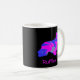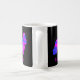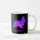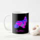 Silhouette de chien spaniel Cocker en rose chaud fou et bleu brillant abstrait motif moderne sur une tasse noire. Personnalisez avec le nom sur le devant.