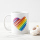 Illustration de coeur esthétique en couleurs arc-en-ciel faite avec pinceaux.
