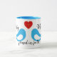Mug Coeur d'Inséparables bleus avec croix et noms Mari