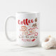 Excellent cadeau pour les amateurs de café et les meilleurs amis. Ce design typographique est écrit en style bistro avec une citation café et des illustrations incluant une tasse de café et un cupcake à gratte-ciel. Le mignon dicton du café dit "Café et amis font le parfait mélange" et est écrit dans des couleurs d'automne douillettes de rouge, orange et marron.