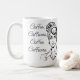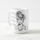 Add some humor to your morning with this funny coffee mug. A funny sarcastic retro lady and quote, "Coffee, Caffeine,"