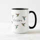 Mug personnalisé pour les amateurs de colibris avec un charme de colibris à gorge rubis. Le style de police, la taille de police et la couleur peuvent être modifiés en cliquant sur "customiser plus loin". Toutes les images d'oiseaux sont tirées d'oeuvres d'art originales.