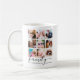 Une tasse familiale moderne et joyeuse avec un collage photo de 18 de vous, de votre famille et de vos amis, et le mignon dicton "la famille est quiconque vous aime inconditionnellement" dans un script et une police serif tendance.