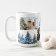 Photo pittoresque tasse à café de Noël avec forêt d'hiver avec des épinettes enneigées. Personnalisez facilement cette tasse pittoresque de Noël aquarelle avec vos photos.