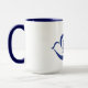 15oz. la tasse blanche avec l'équilibre bleu et la poignée avec le bleu ont plongé avec le sigma grec de lettre à l'intérieur.