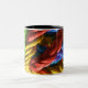 Créez une image vibrante et fantaisiste d'une tasse en céramique avec un design rêveur et coloré. La tasse doit être un mélange de pastels doux et de teintes vives et audacieuses, avec des motifs complexes qui évoquent un sens de la magie et de l'émerveillement. L'arrière - plan devrait compléter le design de la tasse, en incorporant peut-être des tourbillons abstraits, des étoiles ou d'autres éléments ludiques qui rehaussent l'atmosphère de rêve globale. La tasse devrait sembler invitante et presque éthérée, comme si elle appartenait à un monde d'imaginaires où les couleurs se mélangent sans heurts.