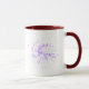 This colorful abstract neon splash coffee mug features a vibrant modern art design on a dark background.