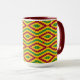 Colorful African Kente pattern in bright yellow, maroon and green.