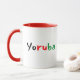 A colorful Yoruba Pan African mug, this design features "Yoruba" displayed in black, red, and green font. The inside of the mug features red with a matching red handle. Customize yours today!